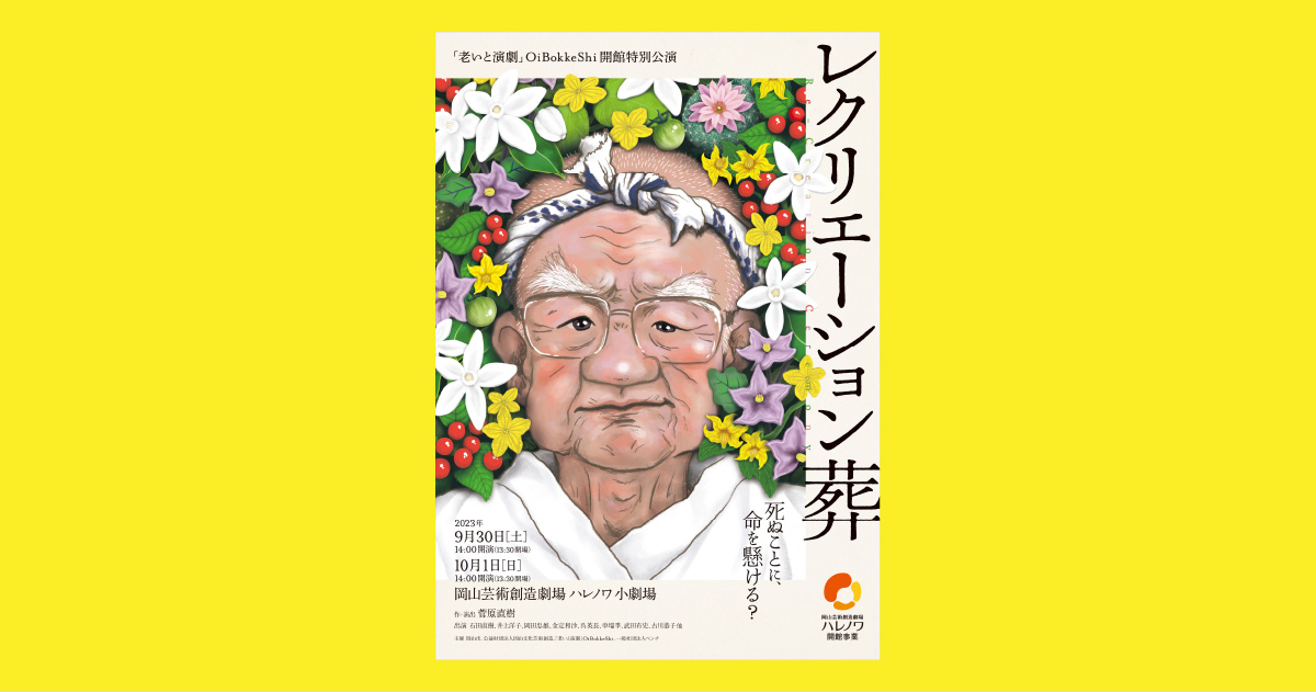 〈OiBokkeShi〉は、俳優で介護福祉士の菅原直樹さんを中心に、2014年に岡山県和気町にて設立されました。同劇団は、「老人介護の現場に演劇の知恵を、演劇の現場に老人介護の深みを」という理念のもと、高齢者や介護者と共に作る演劇公演や、認知症ケアに演劇的手法を取り入れたワークショップを実施しています。